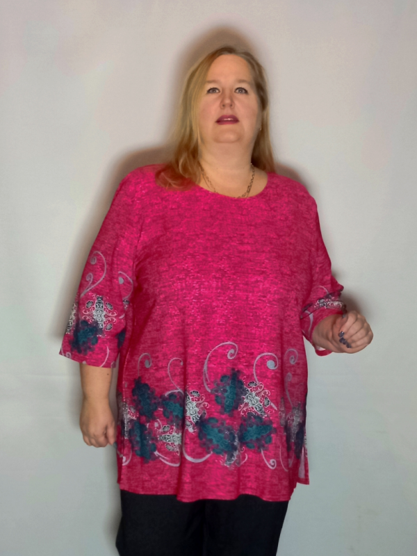 Симпатичная, комфортная туника выполнена из эластичного трикотажного полотна средней плотности.