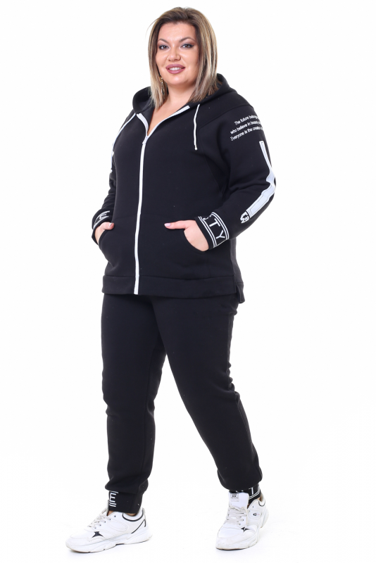 Симпатичный костюм для дома, отдыха и спорта выполнен из однотонного  трикотажного полотна. Трикотаж эластичный, к телу приятный, средней плотности на флисовой основе. Костюм состоит из толстовки и брюк.