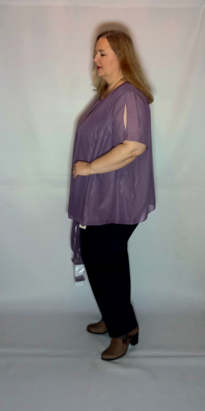 Комплект состоит из кардиган  и блузы. Выполнены из креп шифона. Ткань тонкая, но не рыхлая, воздушная, не эластичная, приятная и дышащая.