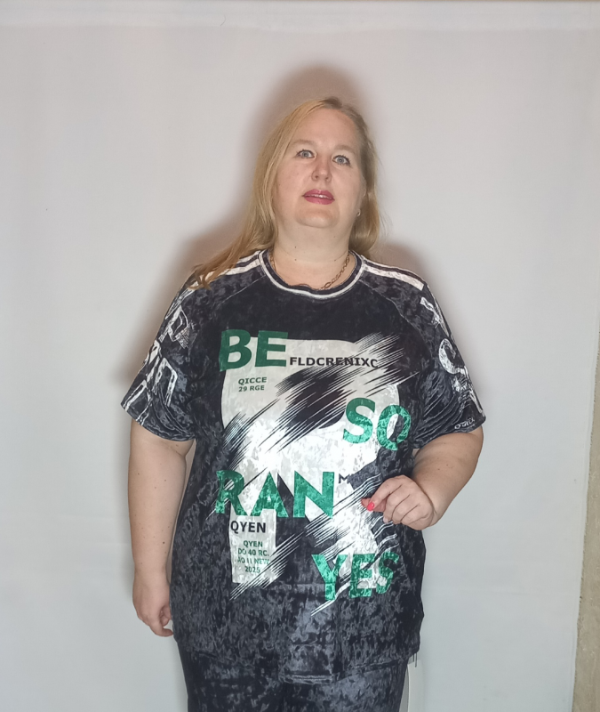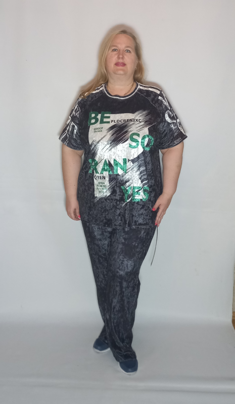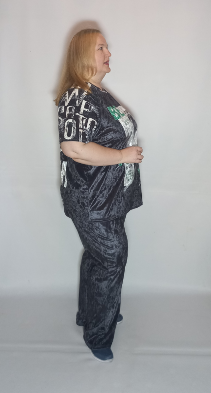 Шикарная туника- футболка выполнена из мягкого, очень эластичного мраморного велюра с рисунком.