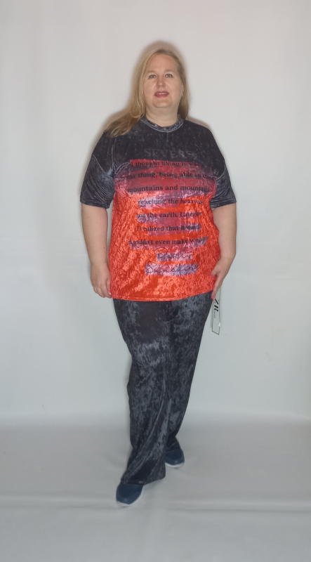 Шикарная туника- футболка выполнена из мягкого, очень эластичного мраморного велюра с рисунком амбре и тканным принтом.