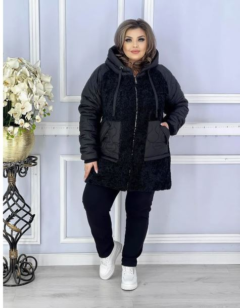 Куртка выполнен из драпа - барашек и стеганной , плащевой ткани.